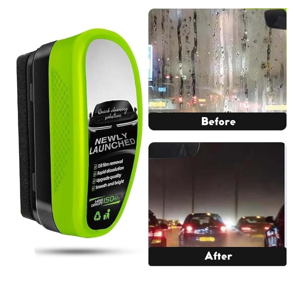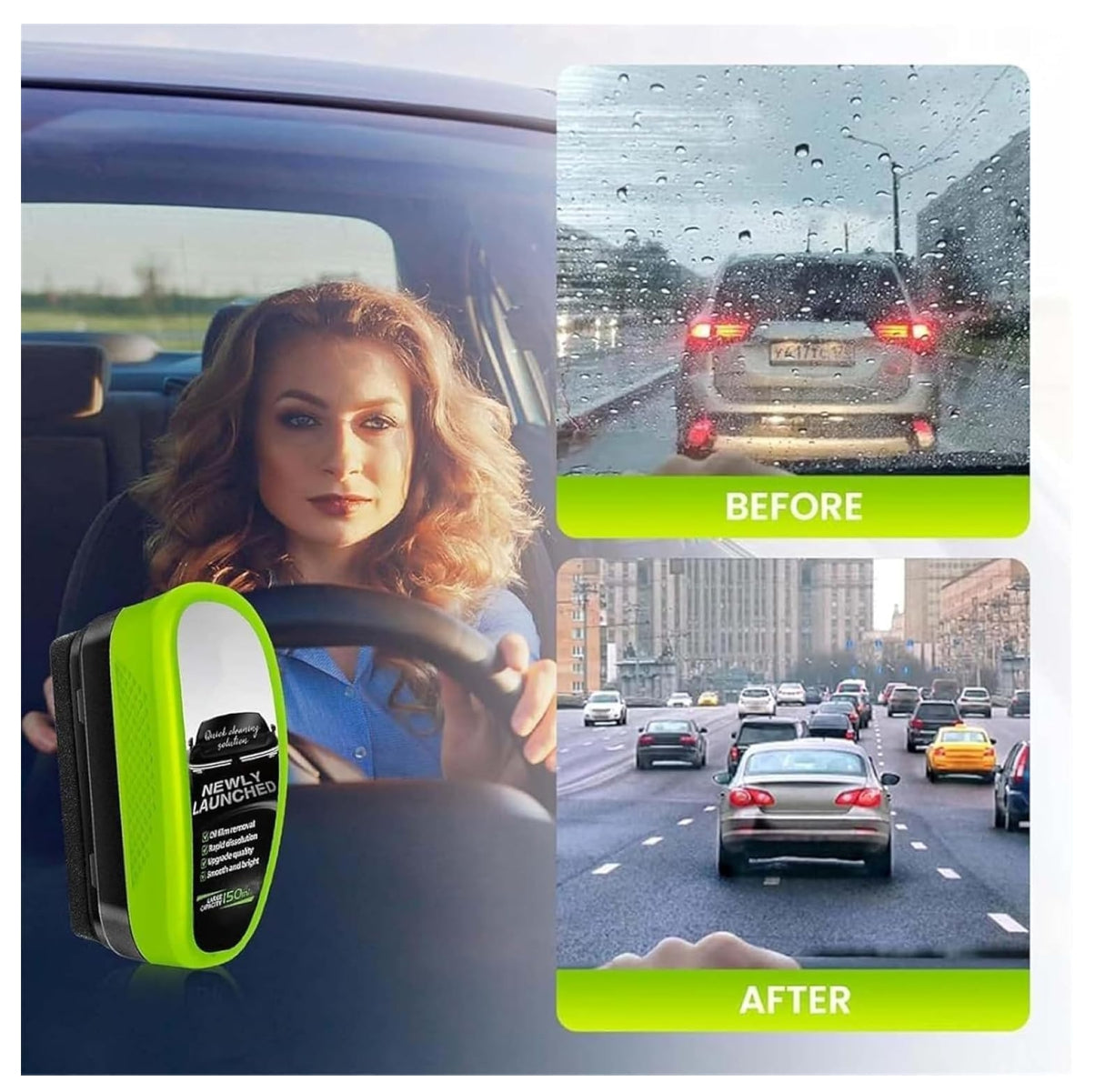 Conduce sin estrés: Oil Filme crea una capa repelente al agua que mantiene tu vista clara incluso en lluvia o neblina.